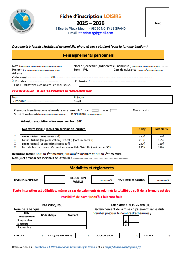 OFFRES LOISIRS (comprend la licence et l’accès aux terrains)