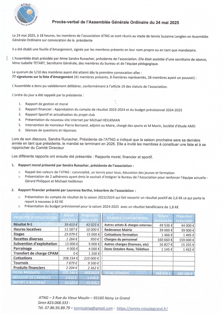 Le samedi 24 mai 2025, l’Assemblée Générale de l’AT Noisy-le-Grand s’est tenue au club, en présence de ses adhérents, membres du bureau et bénévoles.