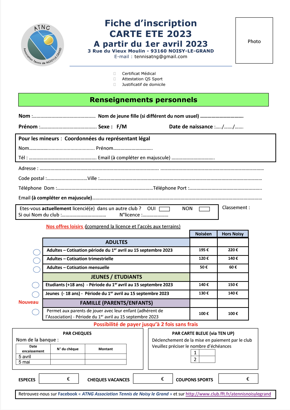 Fiche Inscription Cours Adultes